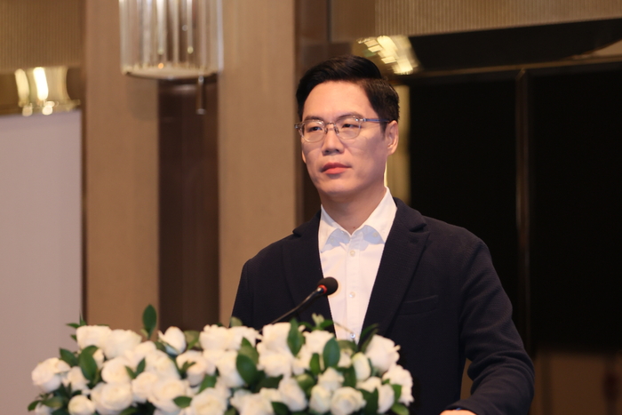 김석환 한세예스24홀딩스 부회장이 29일 베트남 호치민에서 ‘2025 글로벌 기업설명회(IR)’를 개최하고,그룹의 중장기 성장 전략과 계열사별 주요 경영 현황을 밝히고 있다. <한세예스24그룹>