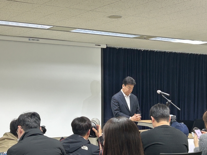 백종원 더본코리아 대표가 지난 3월 정기 주주총회에서 사과하고 있는 모습. [변덕호 기자] 더본코리아도 한 해 내내 각종 구설에 휘말렸다. 백종원 대표를 둘러싼 오너리스크가 전방위적으로 확산되며 브랜드 신뢰에도 타격을 줬다.