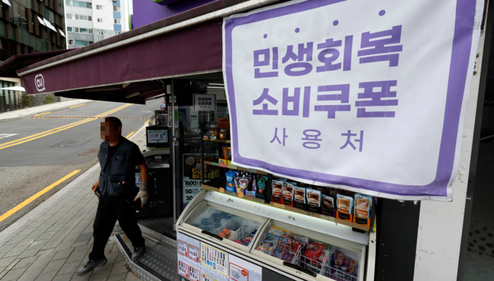 지난 9월 서울의 한 거리에 민생회복 소비쿠폰 사용 가능 매장임을 알리는 현수막이 붙어 있는 모습. [김호영 기자] 이재명 정부가 내수 진작을 위해 꺼내든 ‘민생회복 소비쿠폰’이 소비 촉진에 효과를 냈다. 반면 장기적 자영업 회복이나 지역경제 활성화로 이어지는 ‘낙수효과’에는 한계
