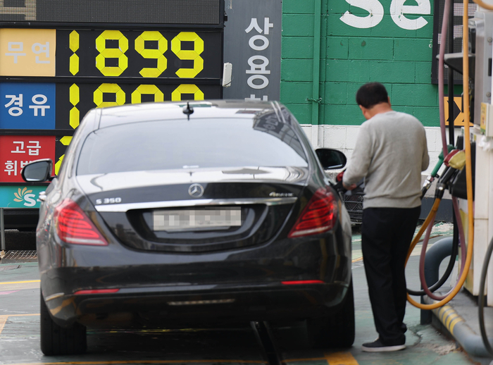 서울 시내 한 주유소 앞에 유가가 게시돼 있다. [연합뉴스] 반도체 업황 회복 기대에 힘입어 2%대 성장이 점쳐졌던 한국 경제가 중동발 지정학적 리스크에 흔들리고 있다. 국제유가 급등과 원화값 하락이 동시에 겹치면서 성장 경로 전반에 하방 압력이 커지는 흐름이다.