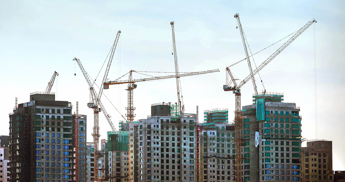 아파트 건설 현장 모습. [매경DB] 국내 부동산 대출·보증·금융상품 등 관련 익스포저(위험노출액)가 4200조원을 넘어선 것으로 나타났다. 다만 증가 속도는 다소 둔화됐다.
